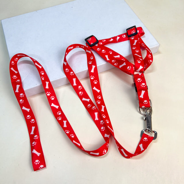 Sada vodítka s postrojem s tlapky (vodítko 120cm, postroj 30-50 cm)