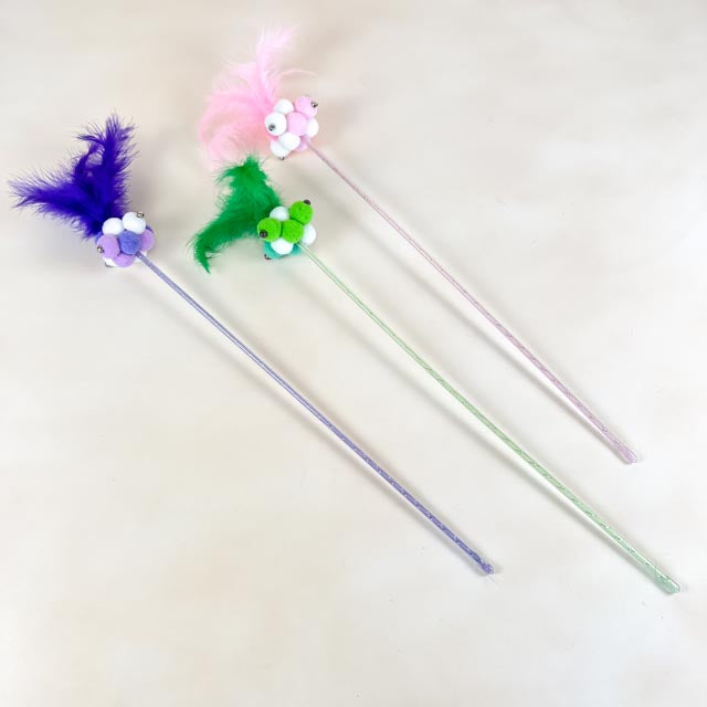 Chlupaté škádlítko pro kočky s rolničkou 50cm tyč
