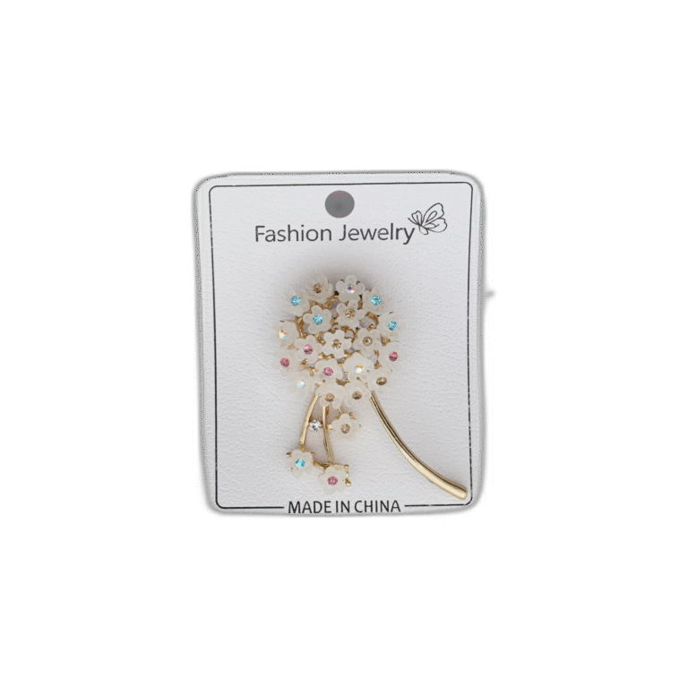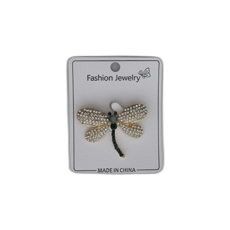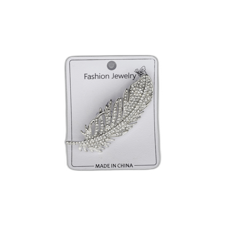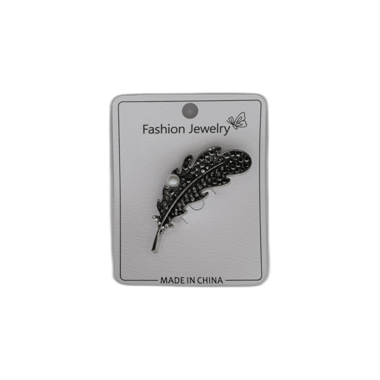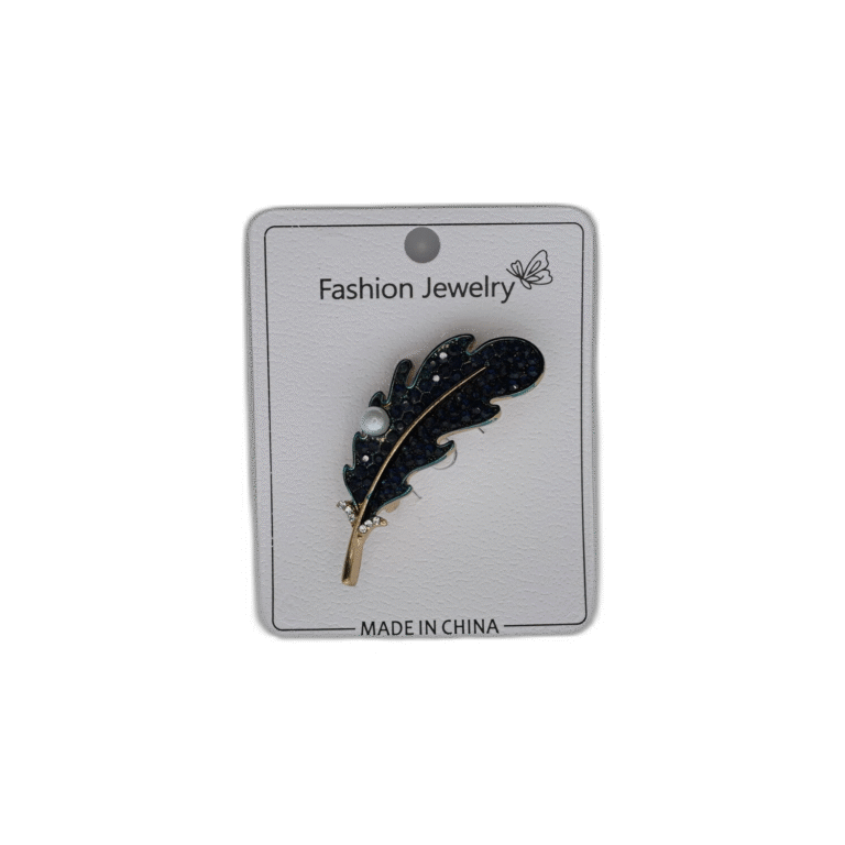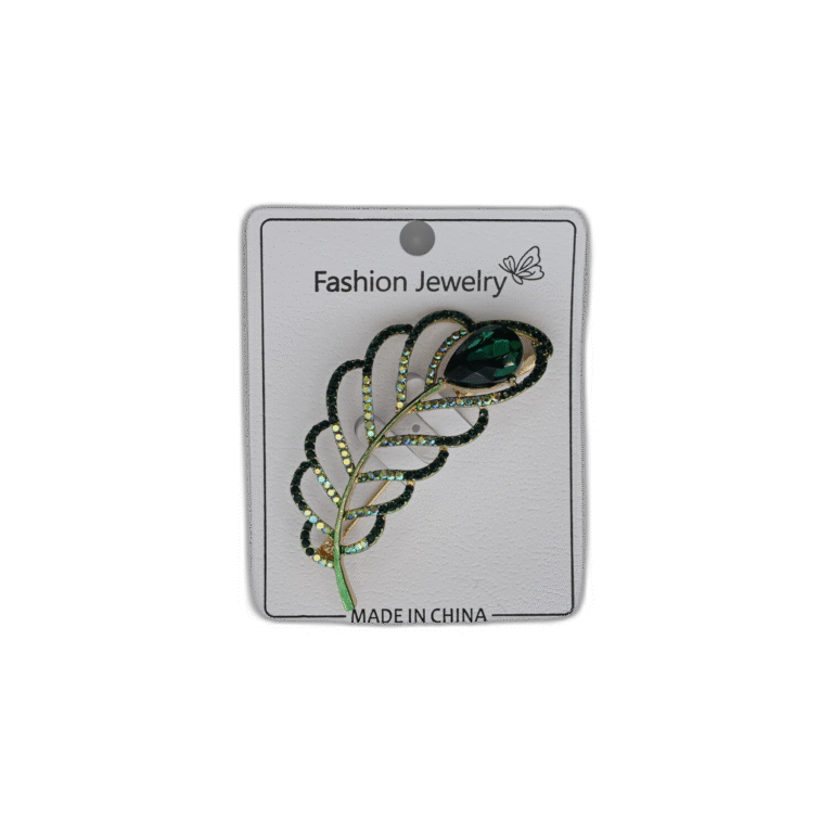 Brož se zeleným pírkem a kamínkem