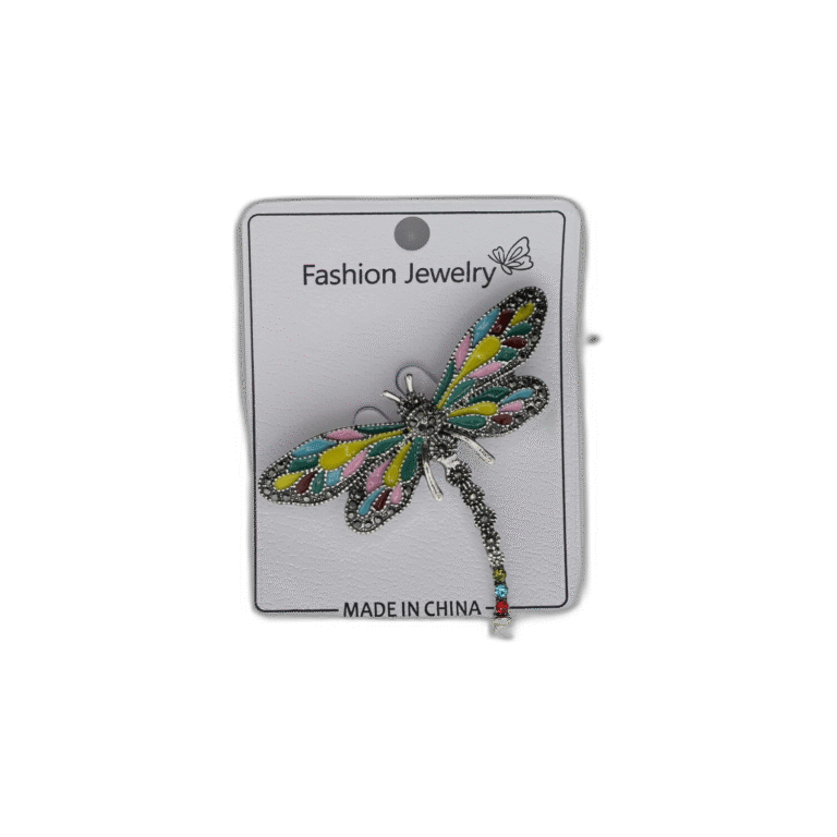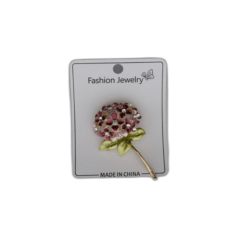 Brož s červeným pírkem a kamínkem