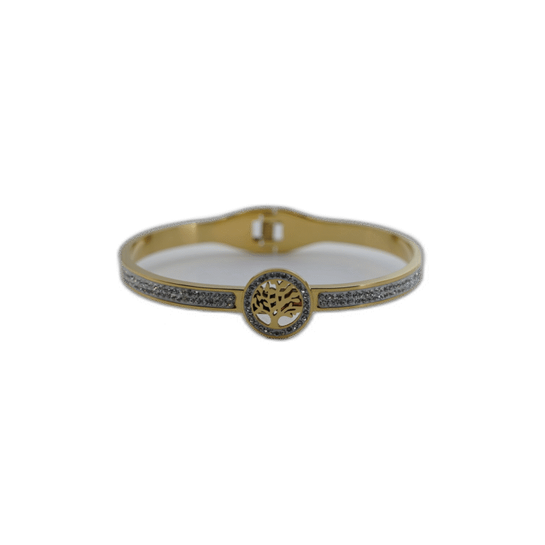 Zlatý náramek z nerezové oceli se stromečkem a kamínky