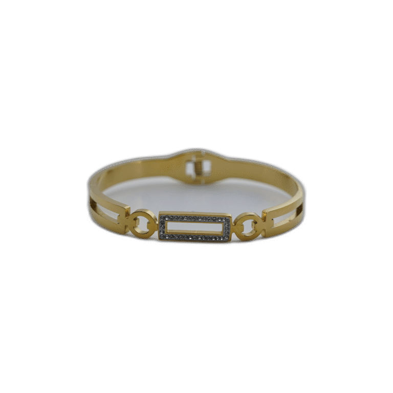 Zlatý náramek z nerezové oceli s obdélníkem a kamínky