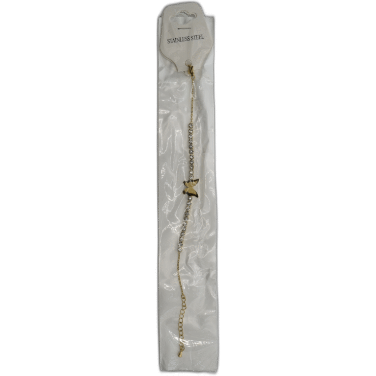 Zlatý náramek z nerezové oceli s motýlkem a kamínky
