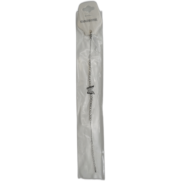 Stříbrný náramek z nerezové oceli s motýlkem a kamínky