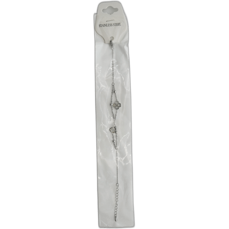 Stříbrný náramek z nerezové oceli s čtyřlístkem a srdíčkem