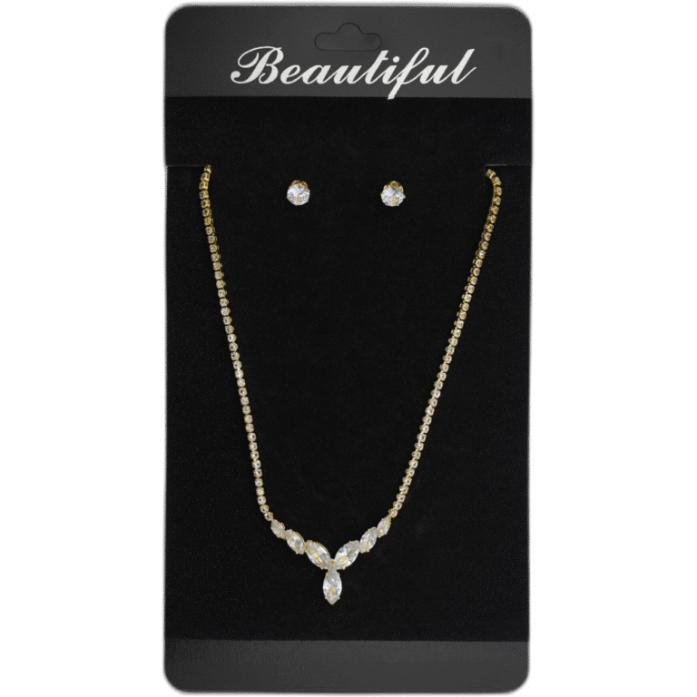 Set zlatých náušnic s náhrdelníkem s drahokamy