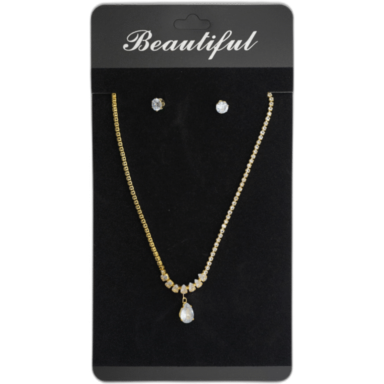 Set zlatých náušnic s náhrdelníkem s drahokamy