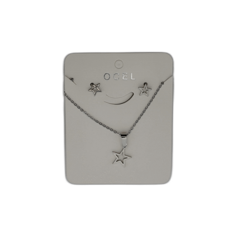 Stříbrný set náhrdelník + náušnice z nerezové oceli s hvězdou