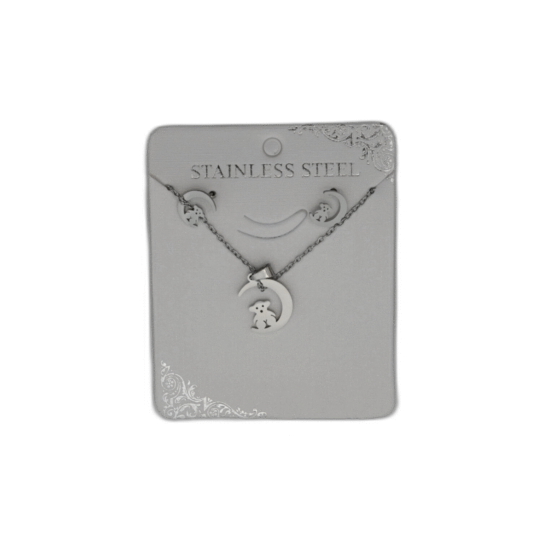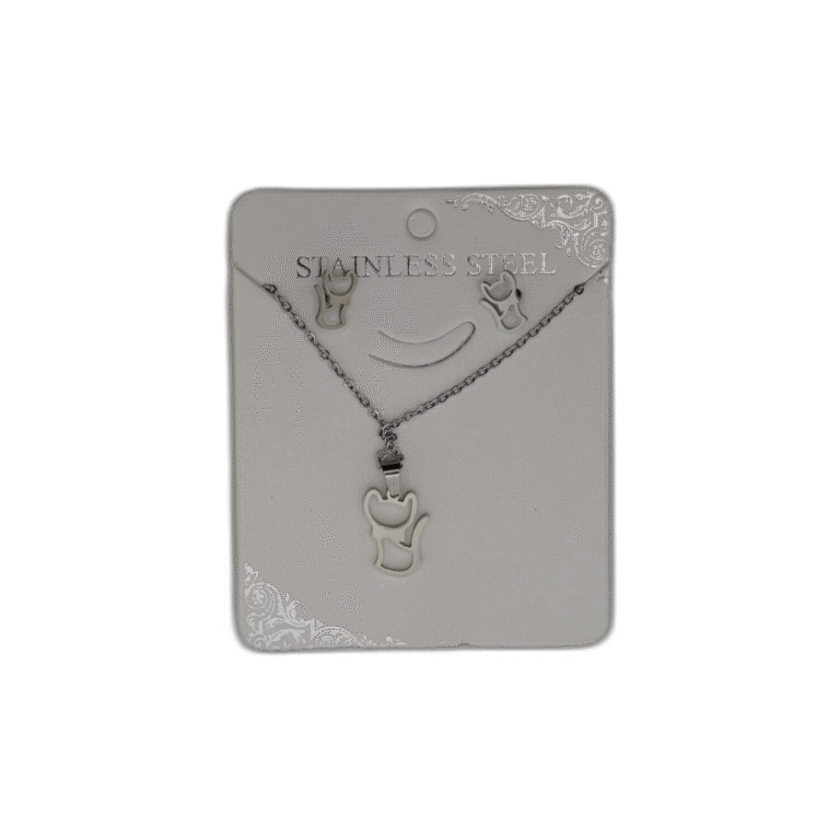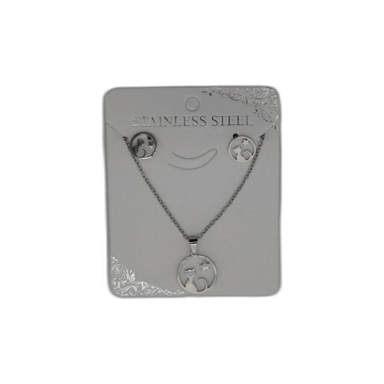 Stříbrný set náhrdelník + náušnice z nerezové oceli s kočkou