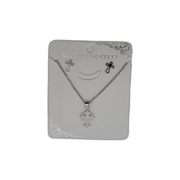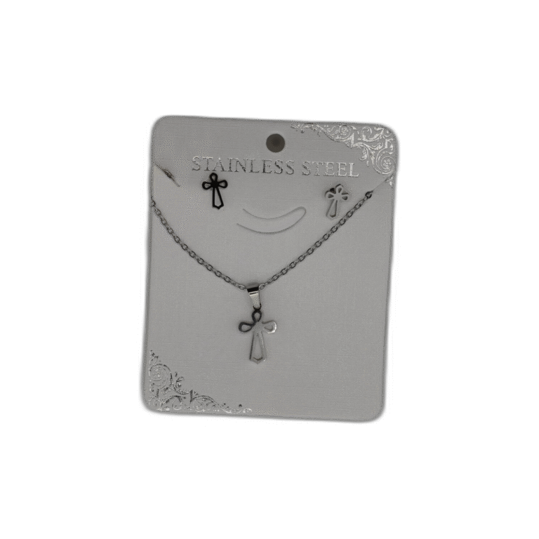 Stříbrný set náhrdelník + náušnice z nerezové oceli s křížem