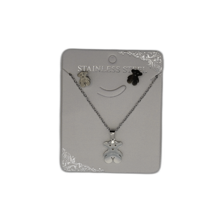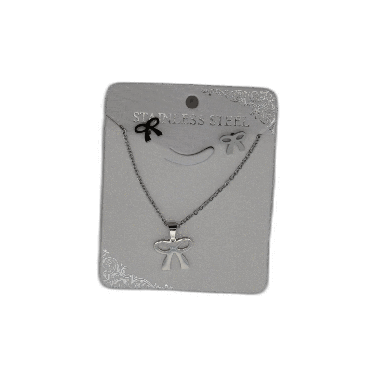 Stříbrný set náhrdelník + náušnice z nerezové oceli s mašlí