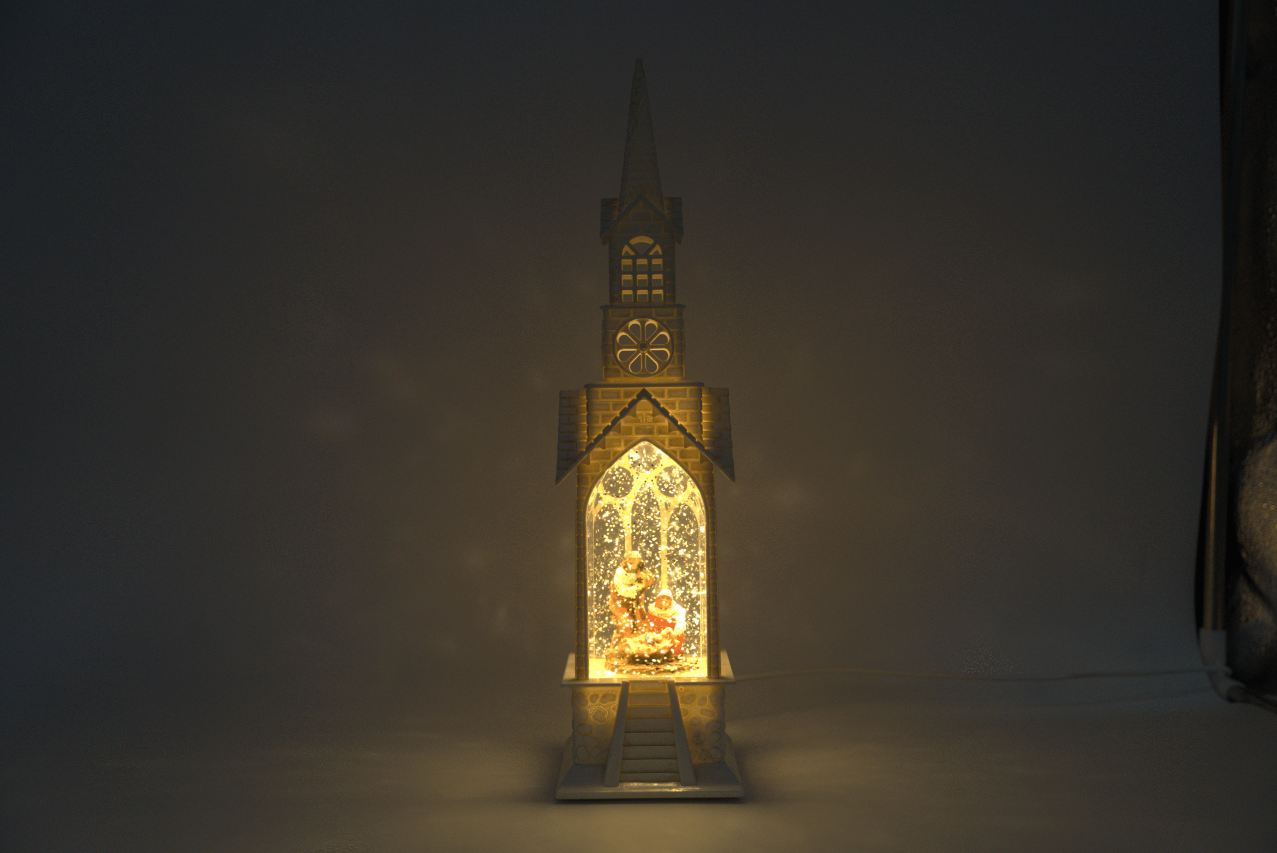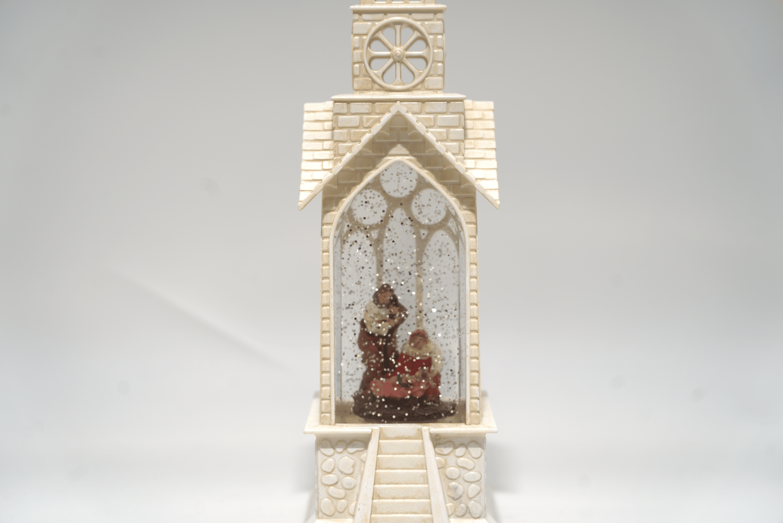 Barevné provedení kostelíčku s betlémem vytváří veselou a živou atmosféru, vhodné pro rodinnou výzdobu i dětské pokoje. Vyrobeno v Číně. 36cm x 9cm x 10cm
