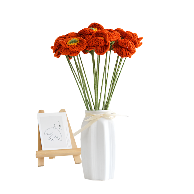 Rozkvětlete svůj prostor s našimi ručně pletenými květinami! Každý kousek je pečlivě vyroben s láskou a precizností. Tyto trvanlivé a realistické květiny dodají vašemu domovu nebo kanceláři elegantní a přírodní atmosféru. Bez potřeby zalévání a bez ohledu na roční období vám naše květiny poskytnou trvalou krásu. Vyberte si z naší široké škály květinových druhů a přidejte do svého interiéru zářivý nádech přírody. Objednejte si své ručně pletené květiny ještě dnes a přineste do svého domova jedinečnou květinovou inspiraci! Materiál: Příze, bavlna