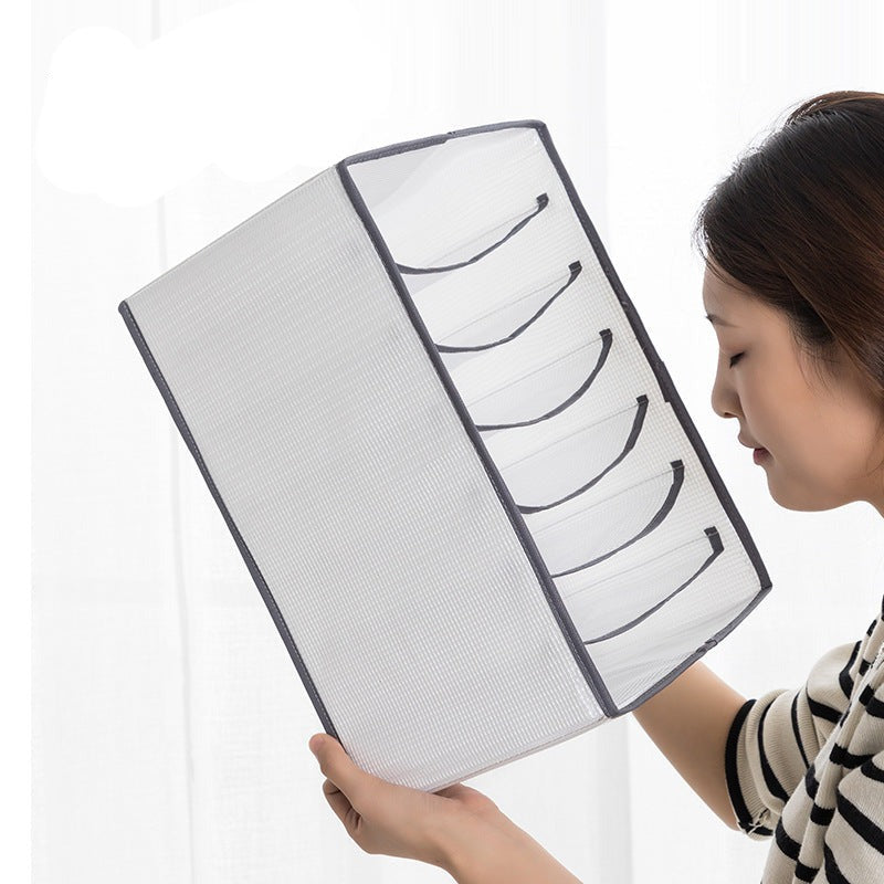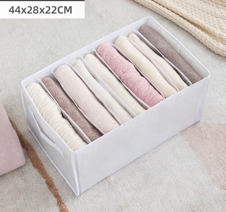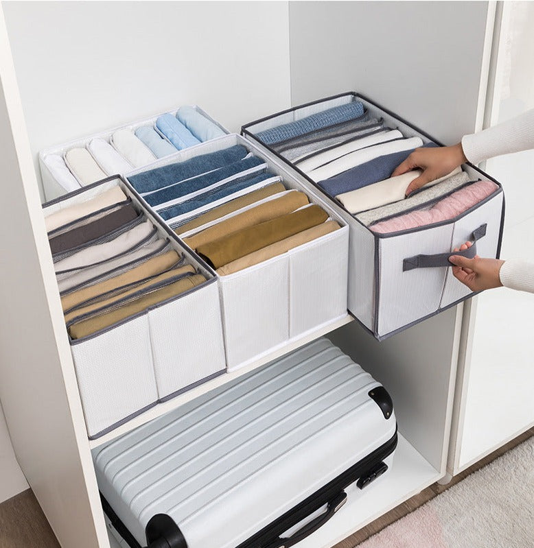 Praktický organizér do skříně a šuplíku pro oblečení, spodní prádlo a další doplňky – optimalizace prostoru a usnadnění organizace! Náš skvělý organizér vám pomůže s úklidem a uspořádáním vašeho oblečení, spodního prádla a různých doplňků. Jeho jednoduchý a efektivní design vám umožní využít maximálně každý centimetr ve vaší skříni nebo šuplíku, a tím ušetřit cenné místo pro další věci. Díky praktickému rozdělení na oddíly a šuplíky můžete snadno kategorizovat a oddělit své oblečení podle typu, velikosti nebo sezóny. To vám usnadní hledání požadovaného kusu oblečení a udrží vaše šatníky přehledné a upravené. Náš organizér také poskytuje efektivní řešení pro skladování spodního prádla a drobných doplňků, jako jsou šperky, ponožky a pásky. Budete mít všechno na svém místě, což vám ušetří čas a frustraci při hledání správného páru ponožek nebo doplňku. S naším organizérem si užijete uklizenou a přehlednou skříň, což vám usnadní ranní výběr oblečení a celkovou organizaci. Ušetříte nejen prostor, ale také čas a energii. Už se nebudete muset trápit s hledáním a rozmotáváním zamotaného oblečení. Nechte náš organizér udělat práci za vás a užijte si jednoduchost a pořádek ve vašem šatníku!
