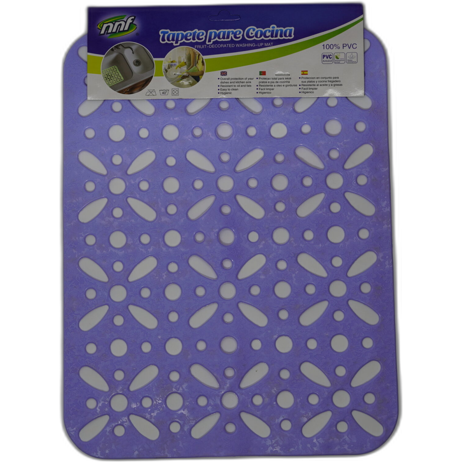 Modrá podložka do dřezu chránící nádobí i povrch dřezu před poškrábáním.