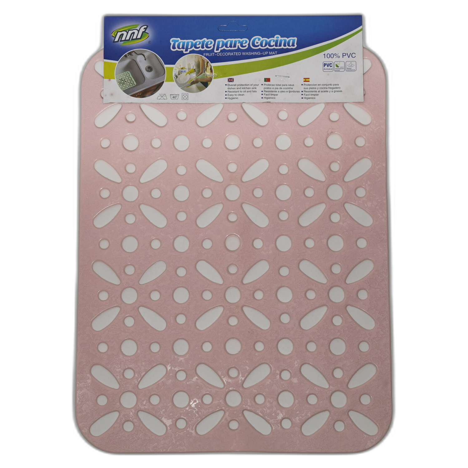Růžová podložka do dřezu ideální pro ochranu kuchyňského dřezu před poškozením.