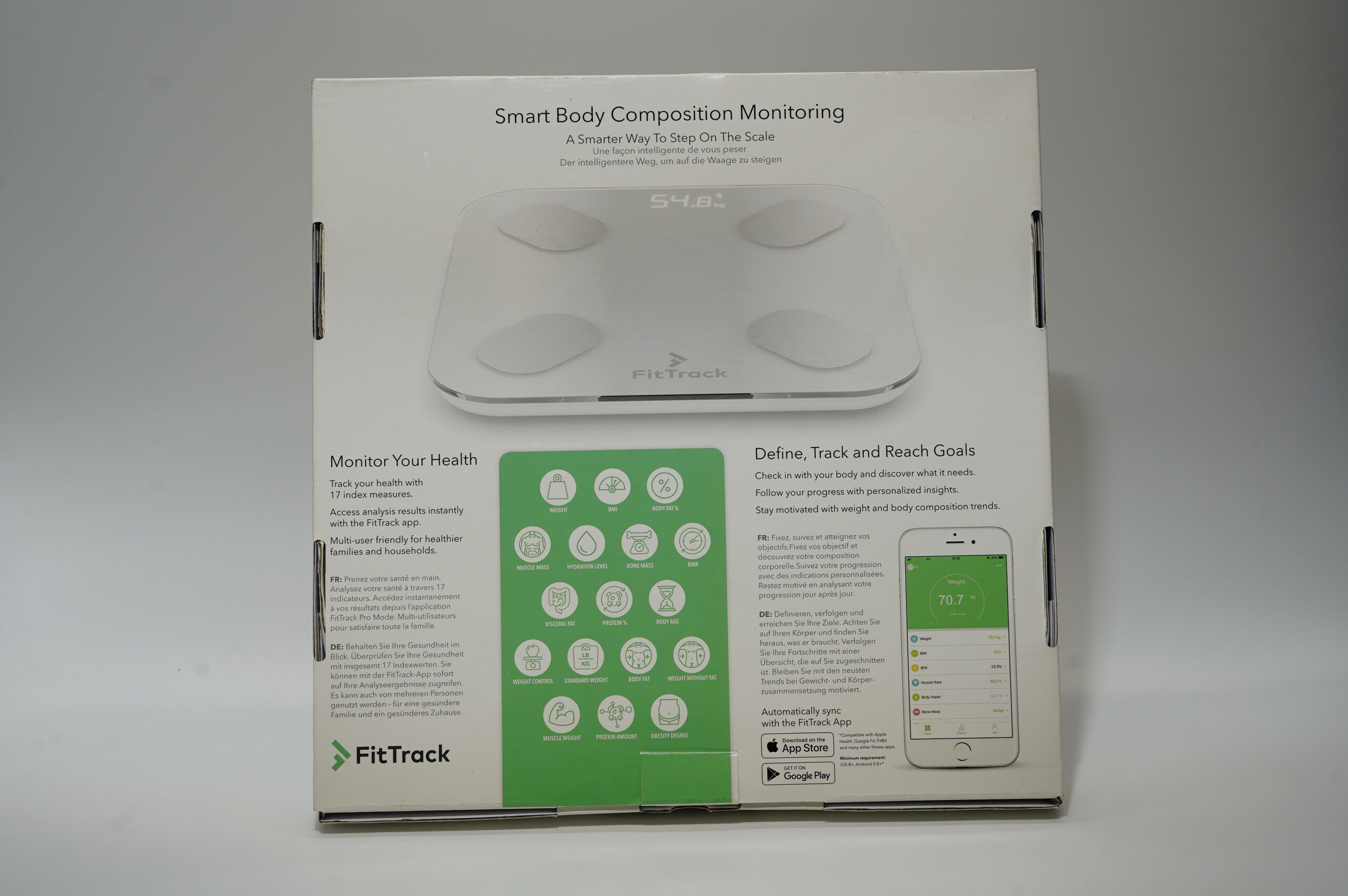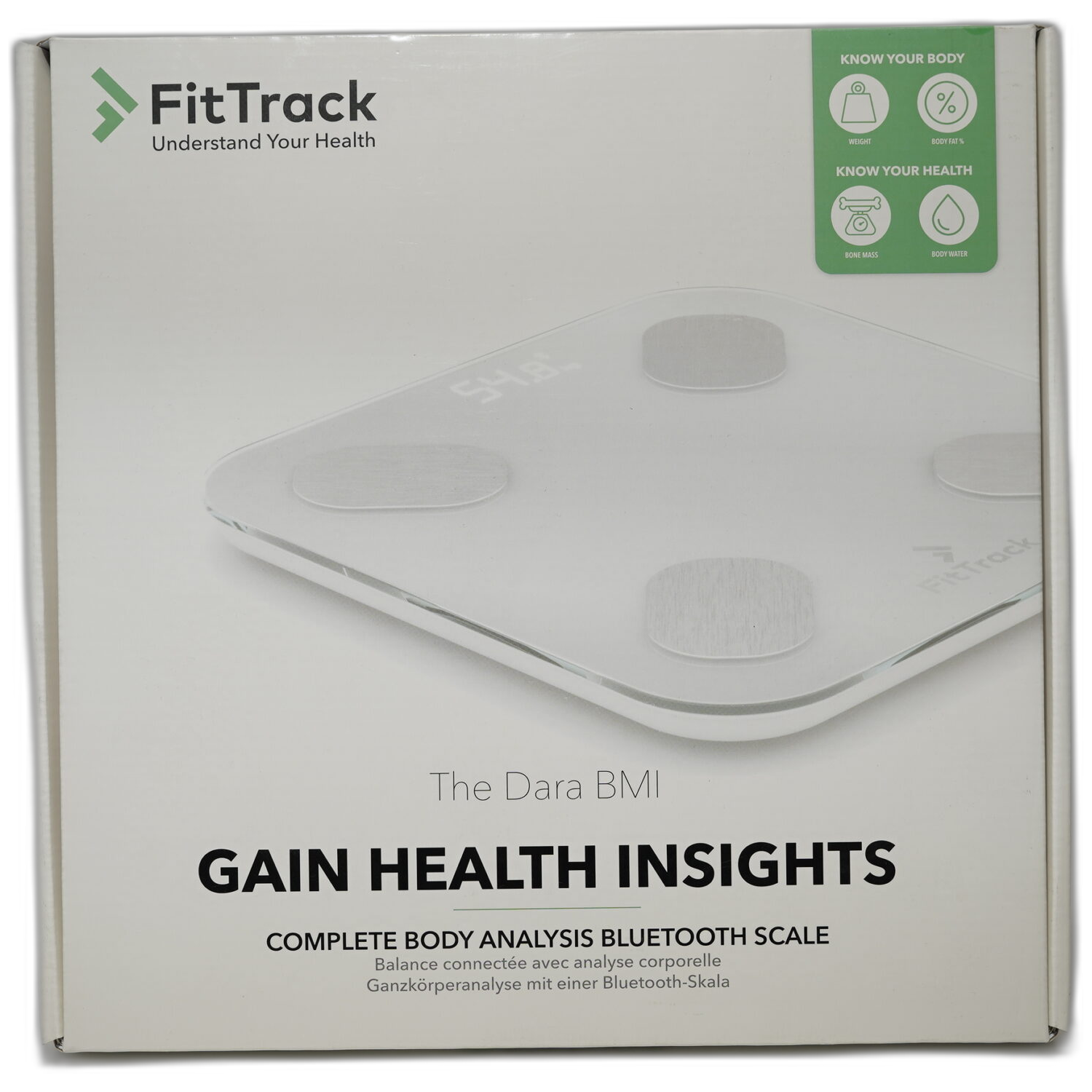 Digitální osobní váha s funkcí BMI Fit Track The Dara, ideální pro sledování tělesné kondice a zdraví.