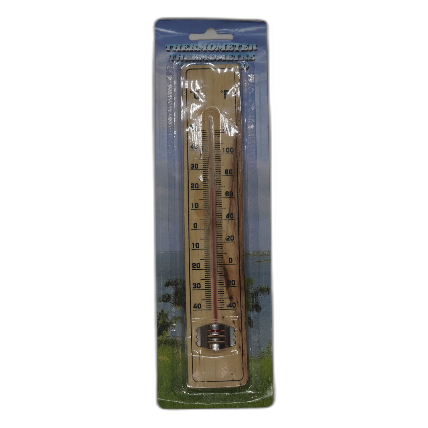 Klasický dřevěný teploměr vhodný do interiéru i exteriéru. Přehledné číselníky a přírodní vzhled.