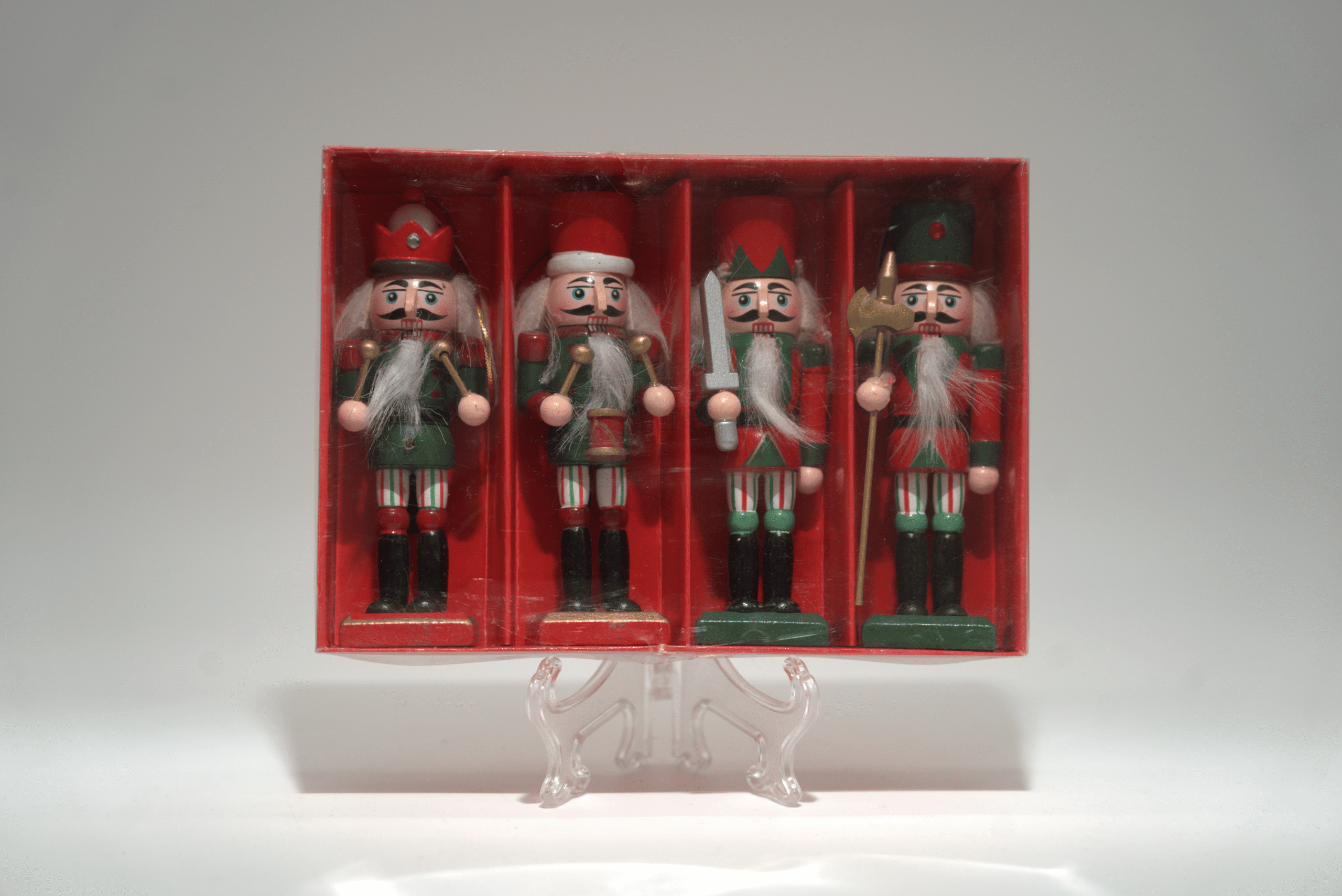 Louskáčci v zeleno-červené barevné kombinaci jako závěsná dekorace.