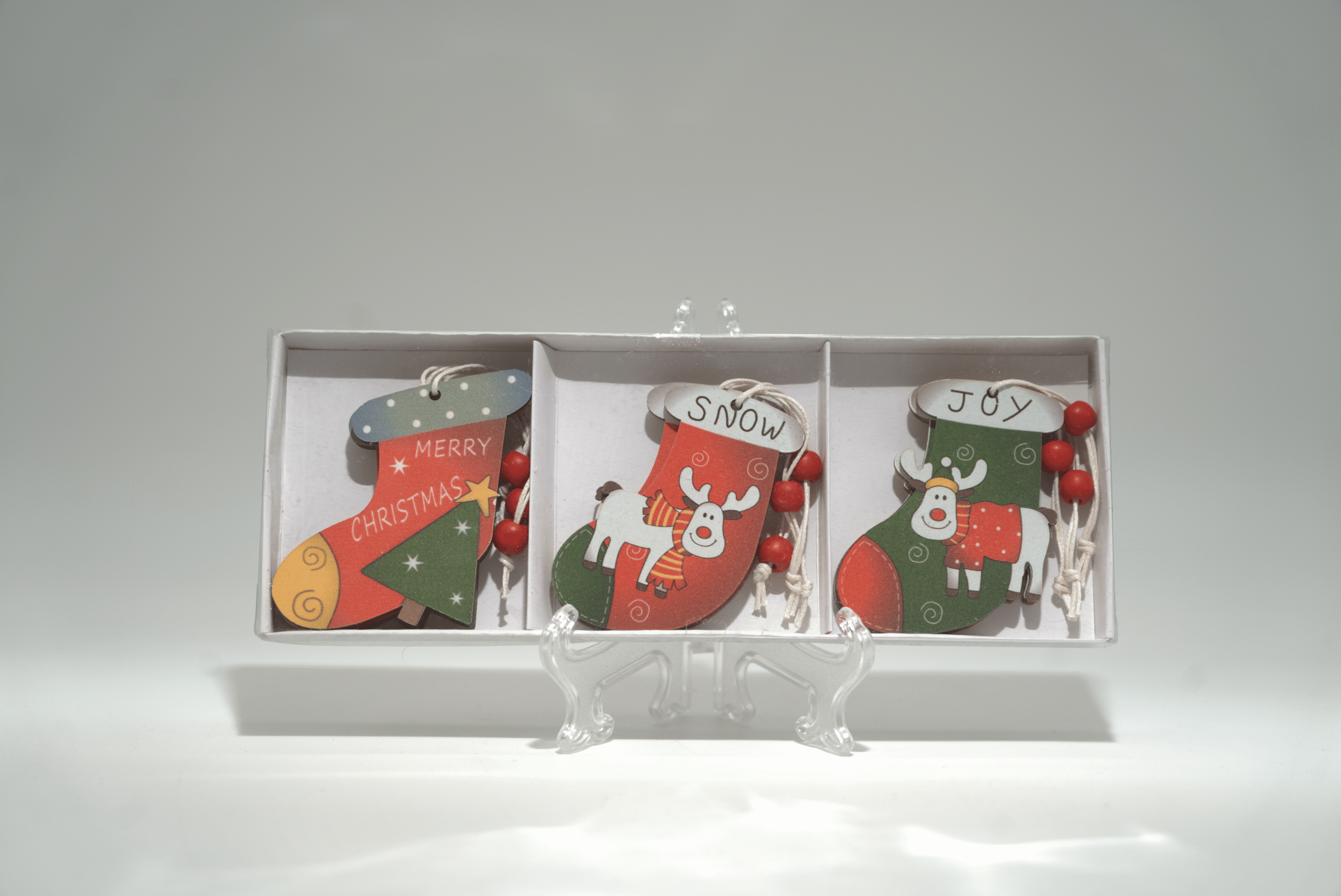 Varianta závěsné dekorace – sada s motivem vánočních ponožek.