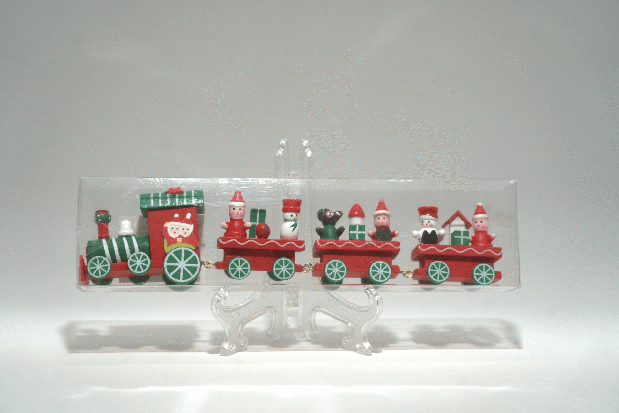Dřevěná závěsná dekorace vláčku pro vánoční výzdobu.