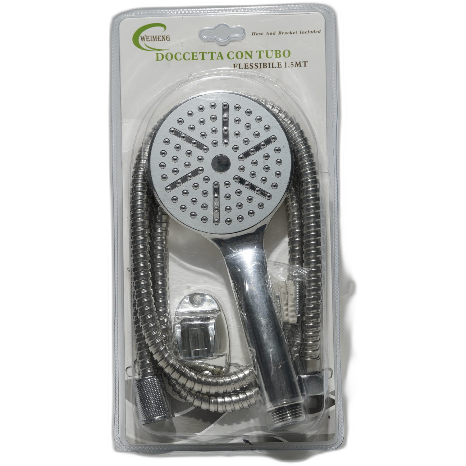 Kompletní sprchový set s hlavicí a hadicí v délce 1,5 metru pro snadnou instalaci a pohodlné sprchování.