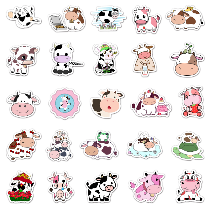 Samolepky Kráva 50ks – 50 odlišných samolepek