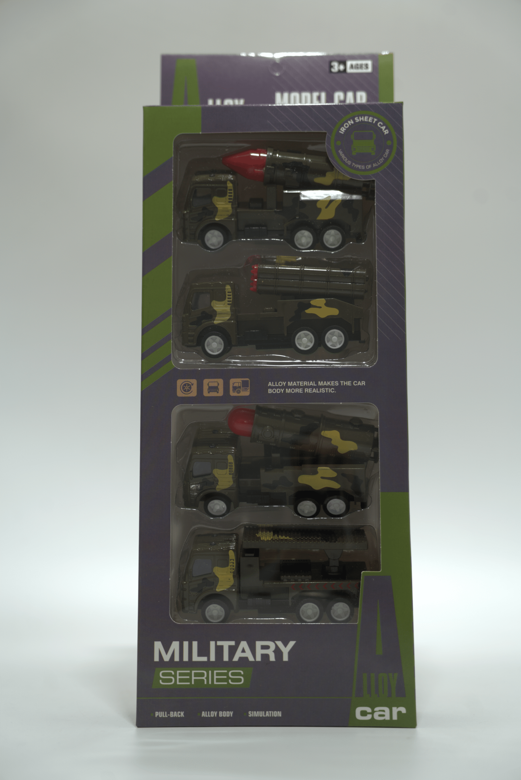 Sada kovových armádních autíček v tmavě zelené barvě pro vojenské hry.
