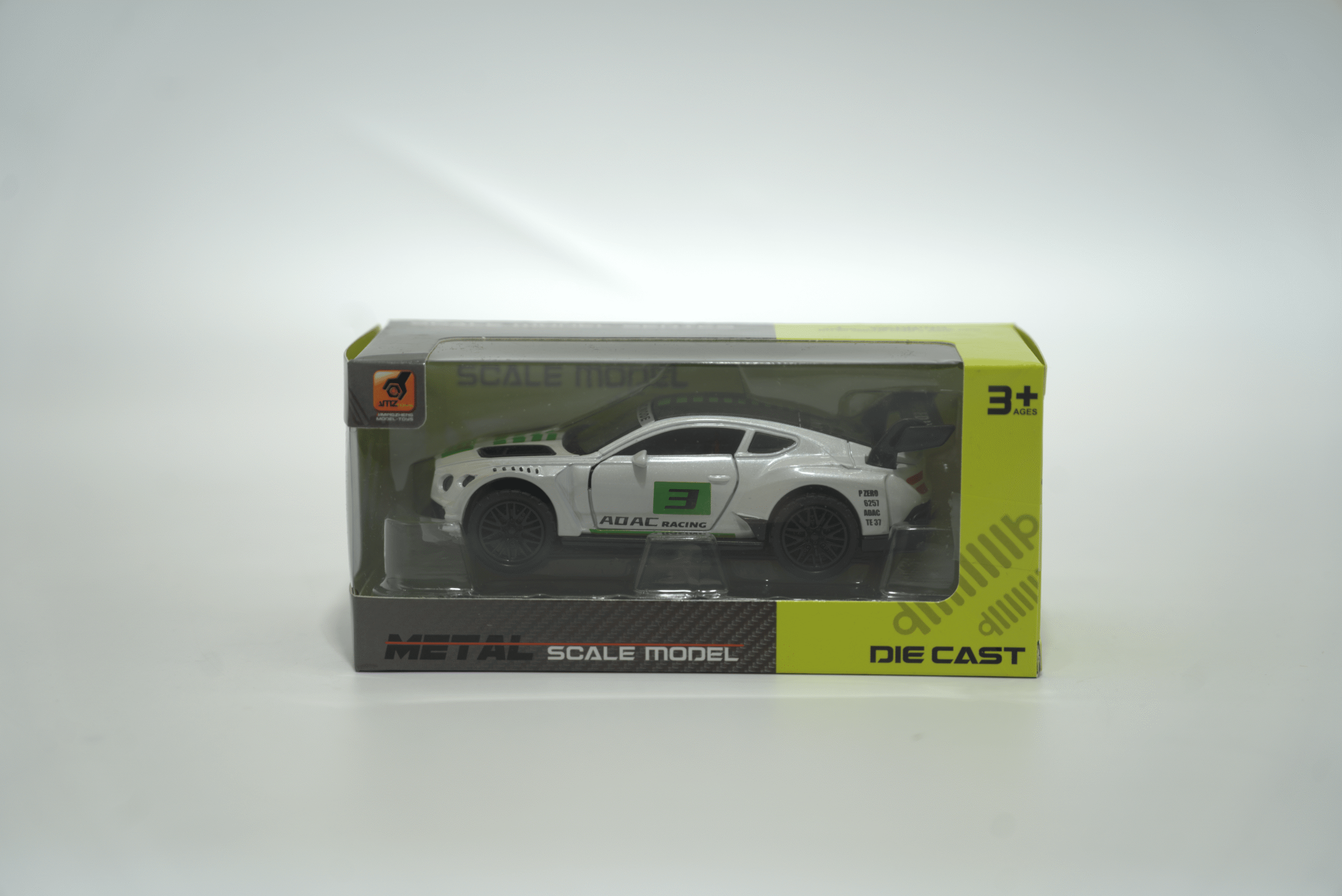 Sportovní kovové autíčko v bílé barvě, ideální pro rychlé závody.