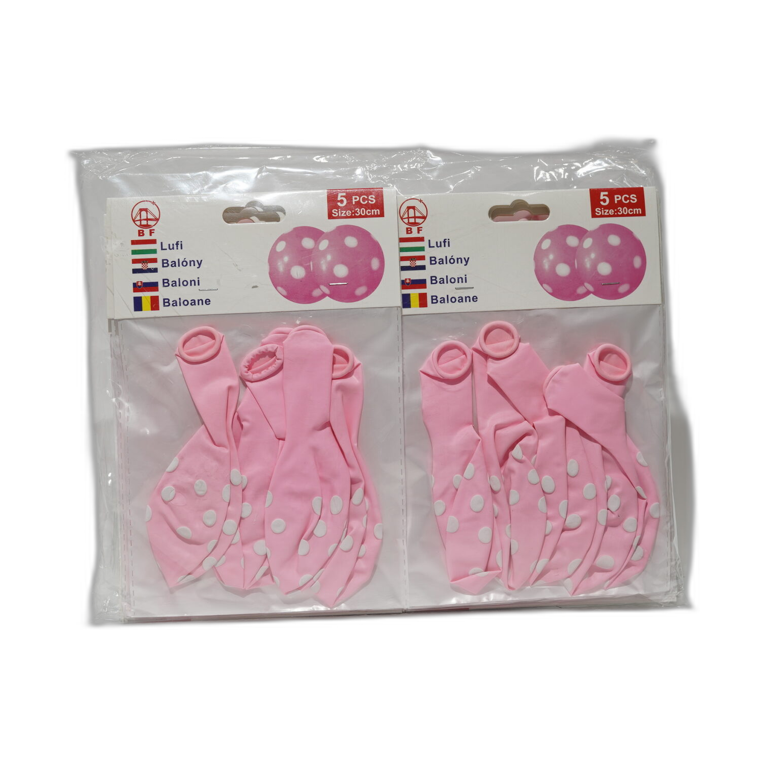 Balení pěti růžových balónků o průměru 30 cm vhodných na narozeninové oslavy, svatby i tematické akce.