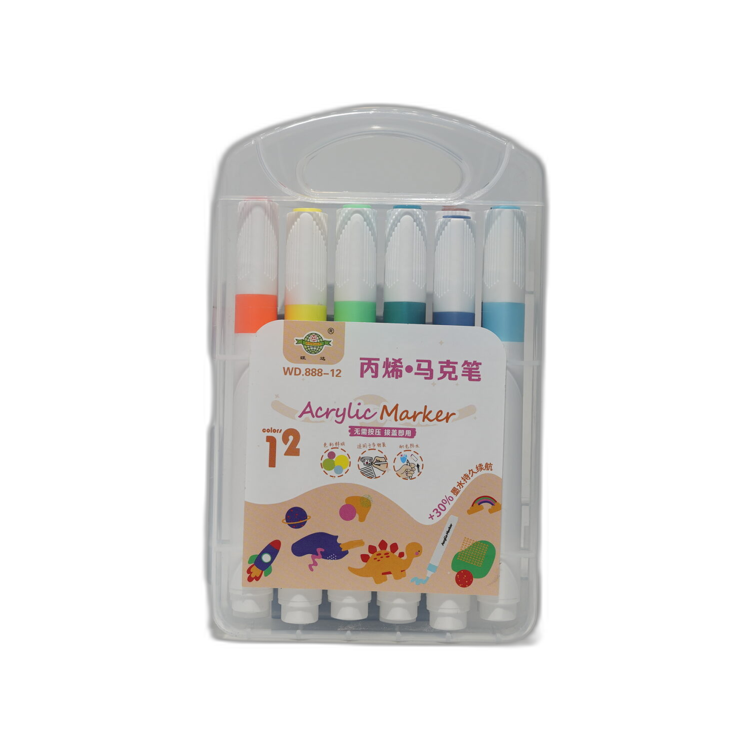 Akrylové popisovače ve 12 výrazných barvách, univerzální na papír, dřevo, sklo či kámen. Perfektní pro kreativní projekty.