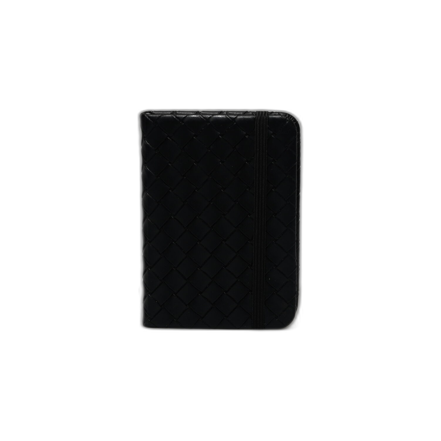 Černý zápisníček s minimalistickým designem vhodný pro stylové poznámky a plánování.