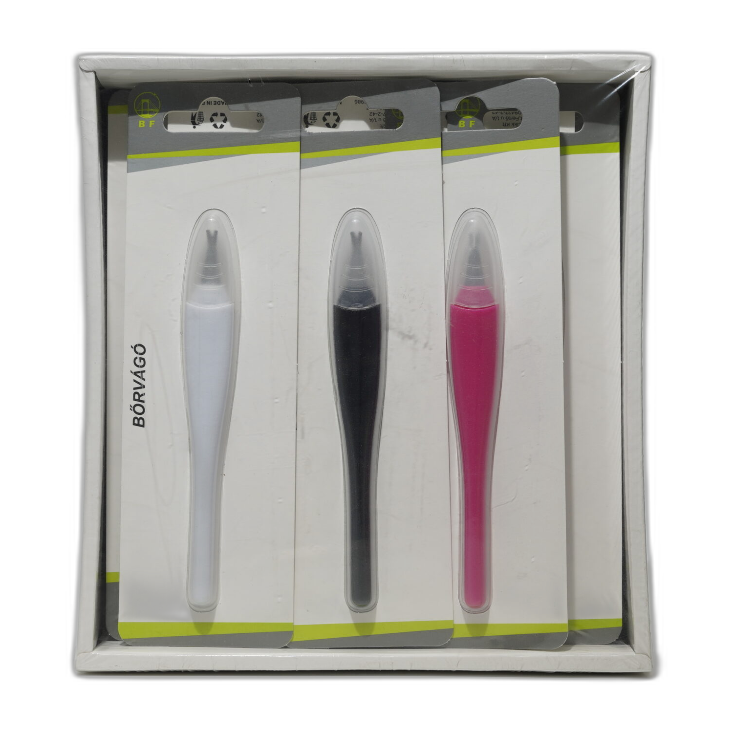Seřezávač kůže ve variantách bílá, černá, světle růžová a tmavě růžová pro precizní péči o chodidla.