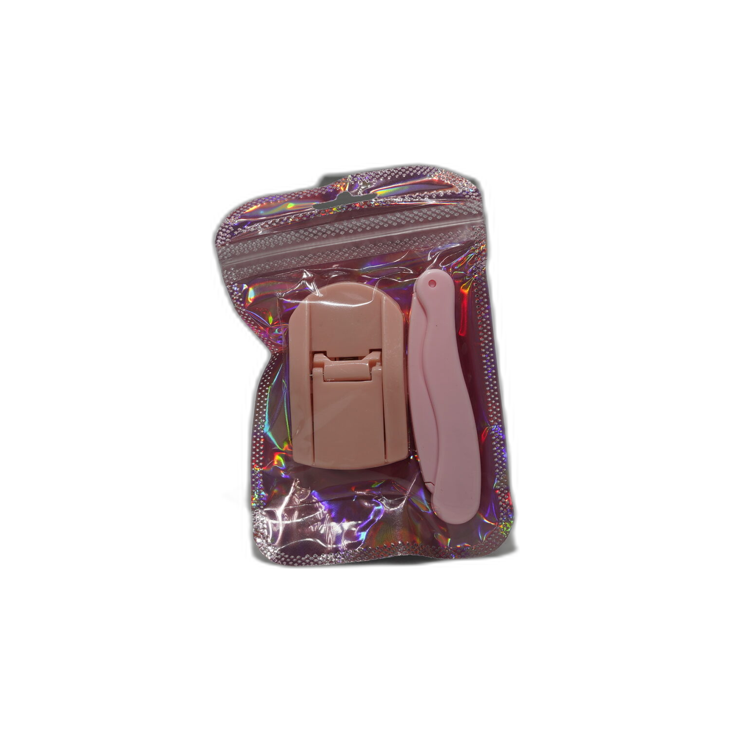 Nůžky na obočí v růžové barvě pro přesné tvarování a úpravu obočí s jemnou rukou.