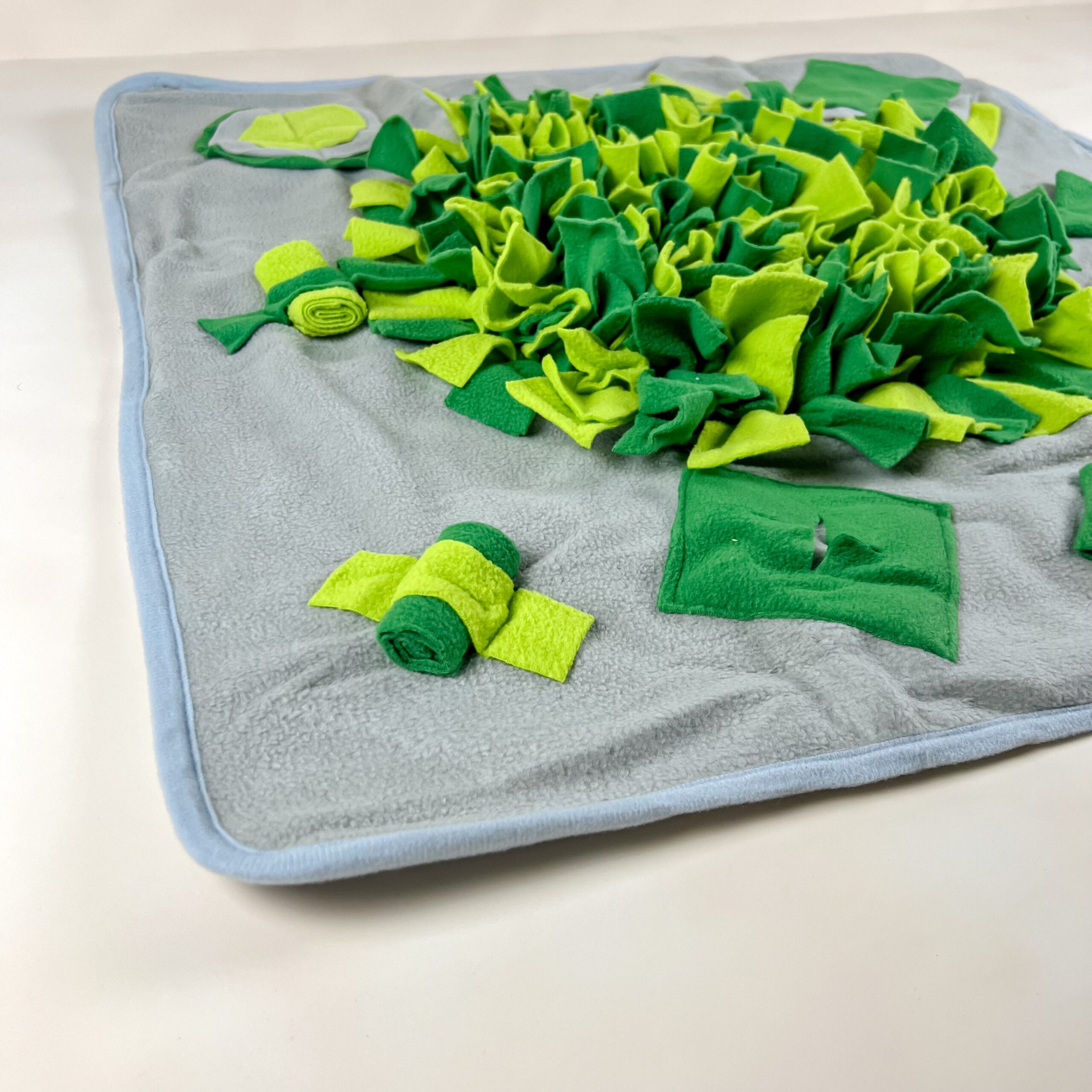 Podpořte zábavné a stimulující chvíle pro svého mazlíčka s naší čmuchací podložkou. Tato inovativní podložka je navržena tak, aby poskytovala mentální stimulaci a vytrvalostní cvičení pro vašeho mazlíčka. S množstvím skrytých kapes a přišitých uzlů můžete snadno schovávat pamlsky nebo hračky, což povzbuzuje vášho mazlíčka k přirozenému instinktu hledání a čmuchání. Vyrobena z odolného materiálu, který je snadno čistitelný, je tato podložka ideálním nástrojem pro trénink, zábavu a udržení zdravé mentální stimulace vašeho mazlíčka. Dejte svému mazlíčkovi důvod k radosti a aktivitě s naší čmuchací podložkou. Rozměr: 65 x 65 cm