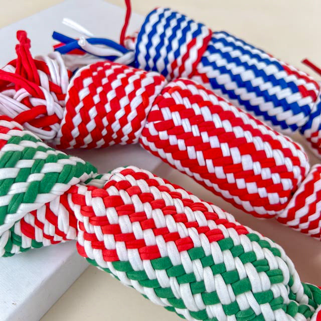 Udělejte svému mazlíčkovi radost s naší pletenou hračkou pro domácí mazlíčky. Tato hračka nabízí nejen zábavu, ale i bezpečnost pro vašeho mazlíčka. Vyrobena z odolného materiálu, který odolá žvýkání a tahání, je tato hračka ideální volbou pro psy různých velikostí. Textura pleteného vzoru poskytuje vášnivým žvýkačům dodatečnou stimulaci a čistě přírodní materiál zajišťuje bezpečnost vašeho mazlíčka. S naší pletenou hračkou můžete mít jistotu, že váš mazlíček bude mít spoustu zábavy a zdravé zábavy. Rozměry: 5.5 x 31 cm