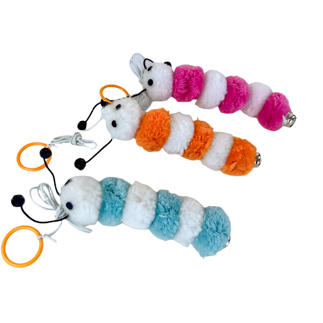 Plyšová housenka s rolničkou na šňůře 15 cm