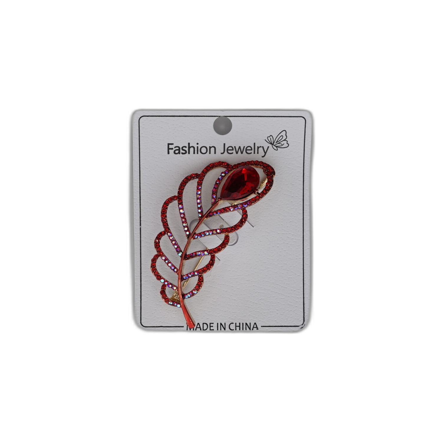 Brož s červeným pírkem a kamínkem. Energický šperk, který upoutá pozornost na první pohled.