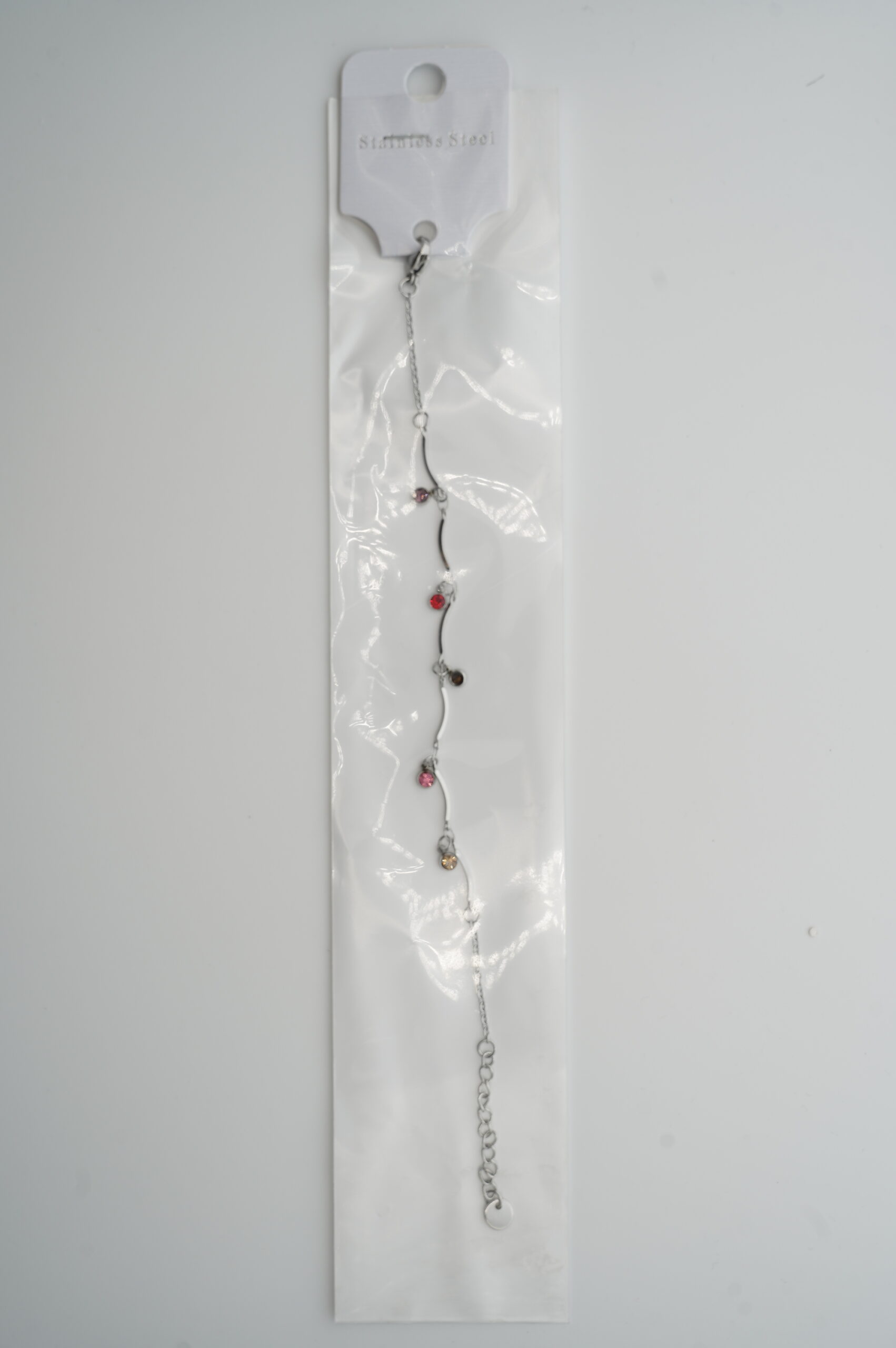 Stříbrný náramek z nerezové oceli s kamínky. Skvělý doplněk pro večerní outfit, který zaujme na první pohled.