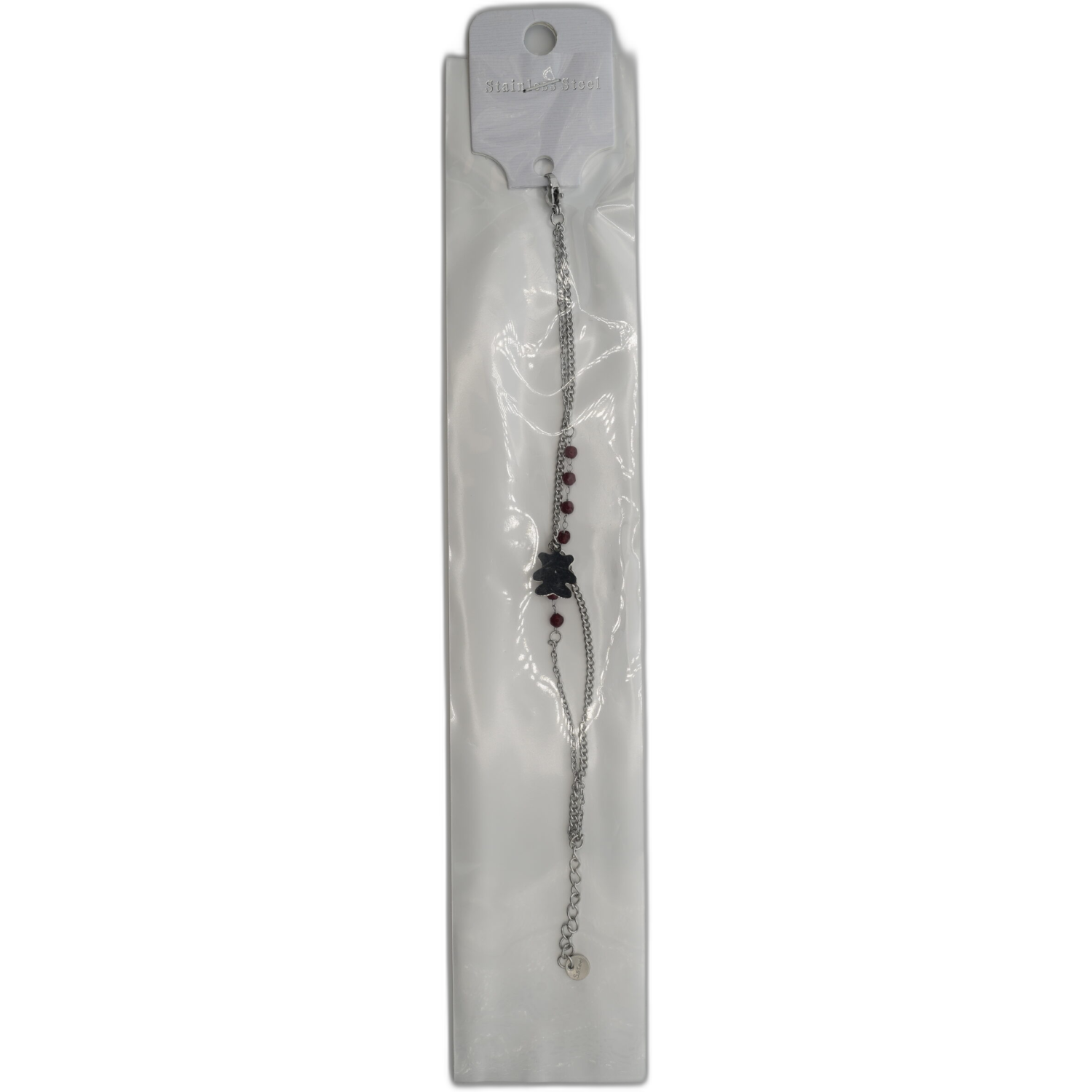 Stříbrný náramek s medvídkem a červenými kamínky. Roztomilý doplněk, který potěší nejen děti, ale i hravé duše.
