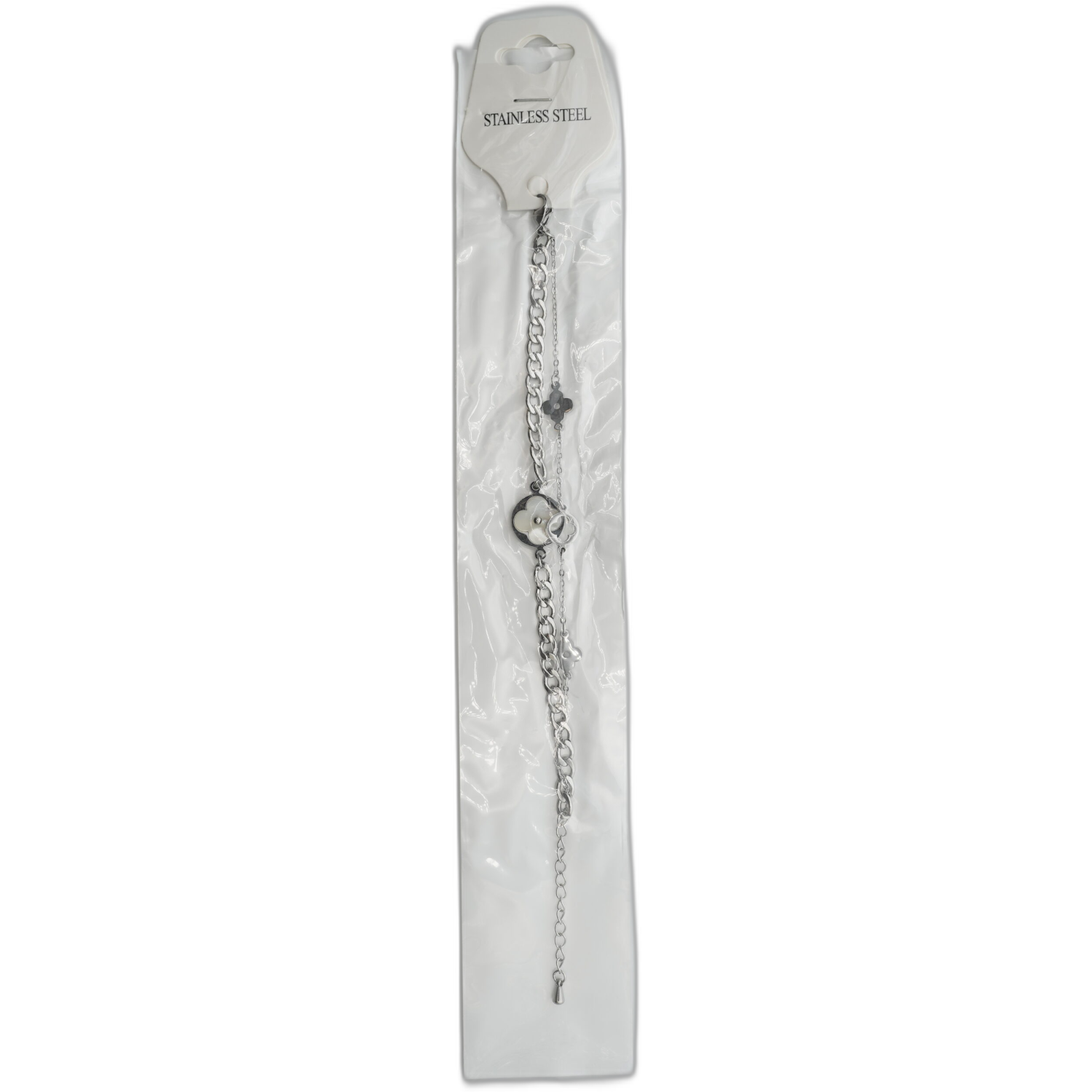 Stříbrný náramek z nerezové oceli s čtyřlístkem